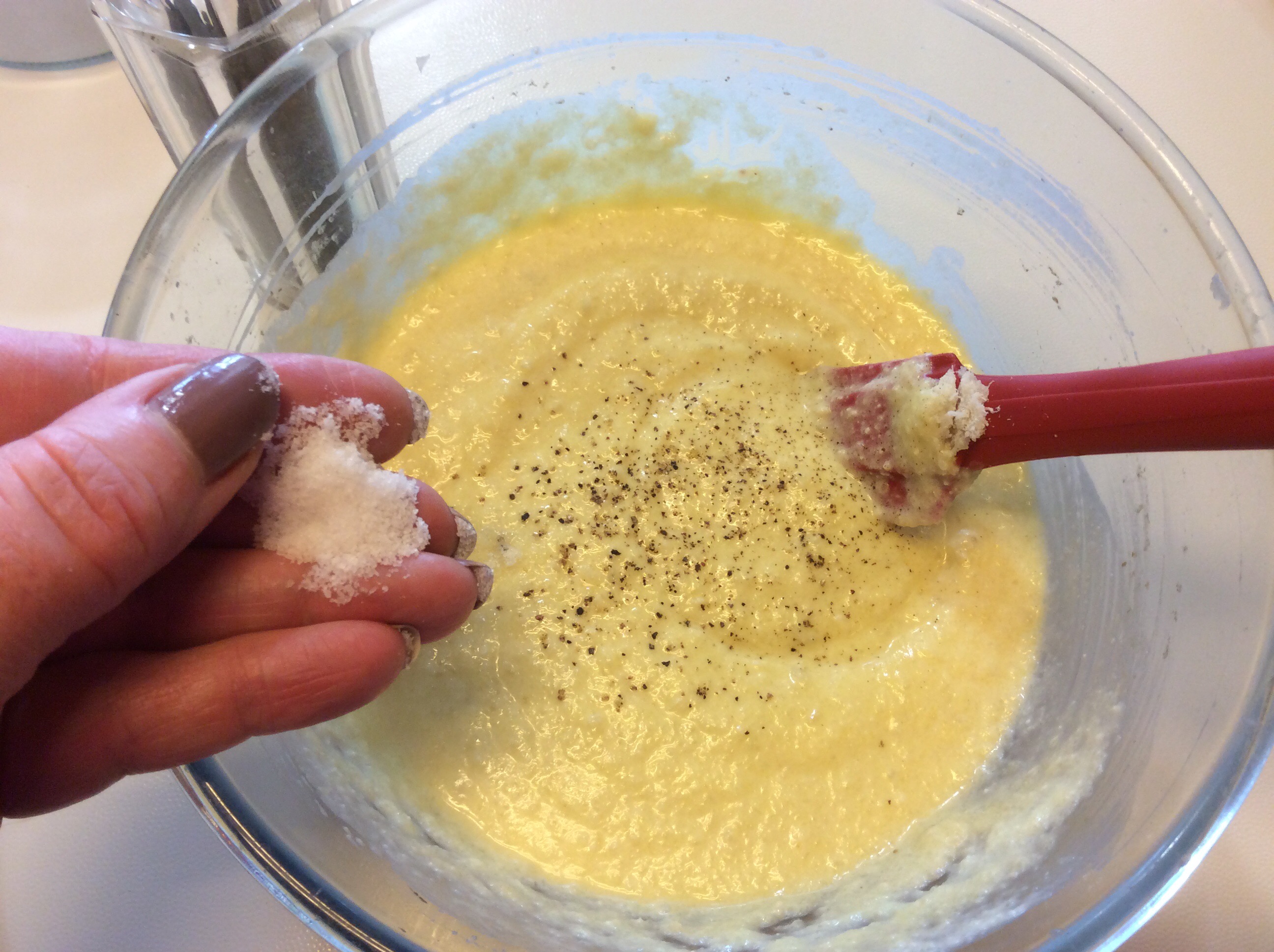Taglio delle fettine di circa 1 cm le appoggio sul tagliere, aggiungo poco sale e pepe