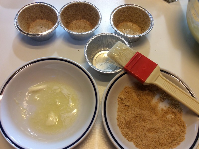 Prendo dei coppa pasta del diametro di 8 cm e li ungo di olio, li appoggio su un quadrato di carta forno e rivesto il bordo con 3 fettine di salmone, pressandolo bene sulle pareti, devono essere ben rivestite senza spazi vuoti